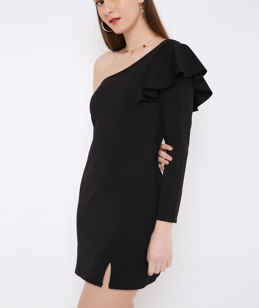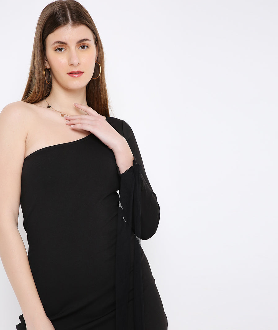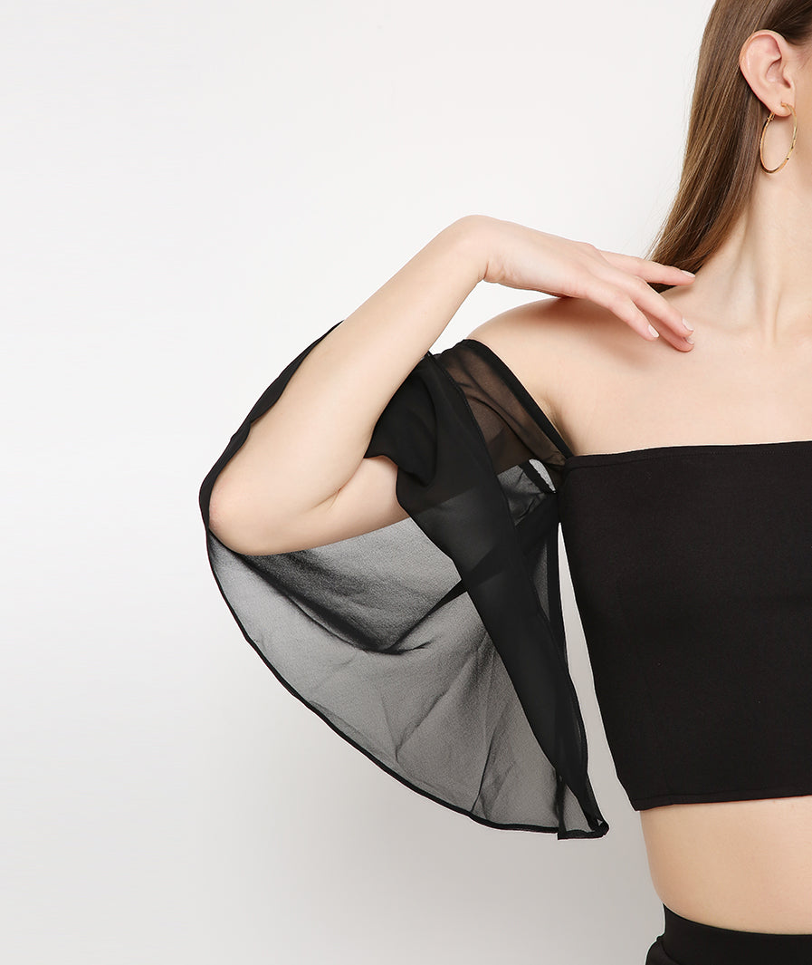 Black Off Shoulder Thumbhole Top with a Drawstring
