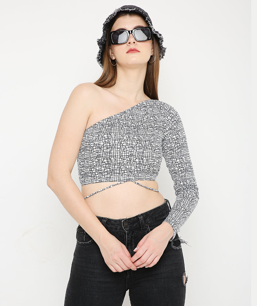 Grey Crop Top + Zic Zac Drawstring Skirt Set