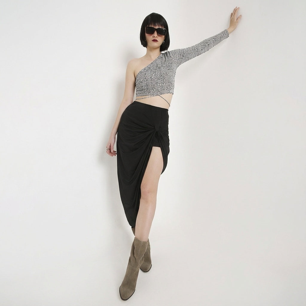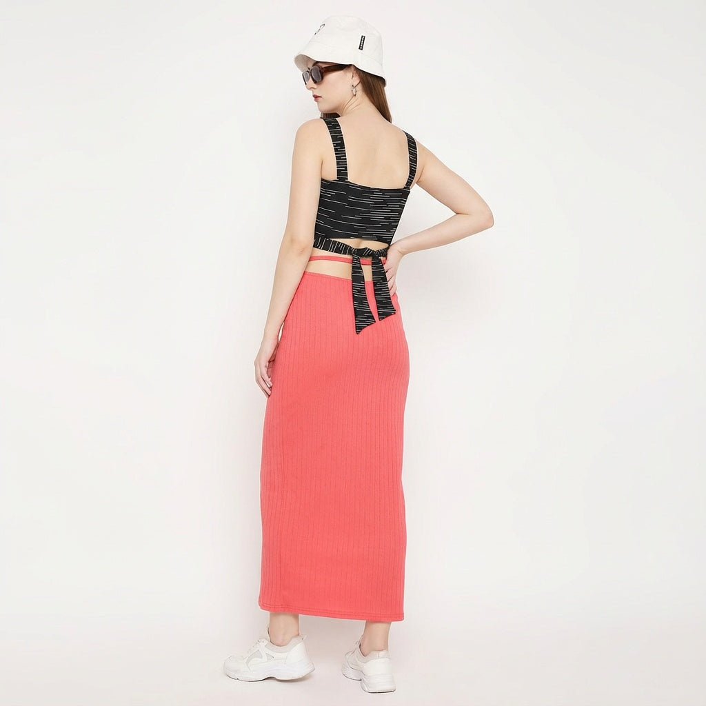 Tiny Lined Crop Top + Punch Tie Up Slit Skirt Set