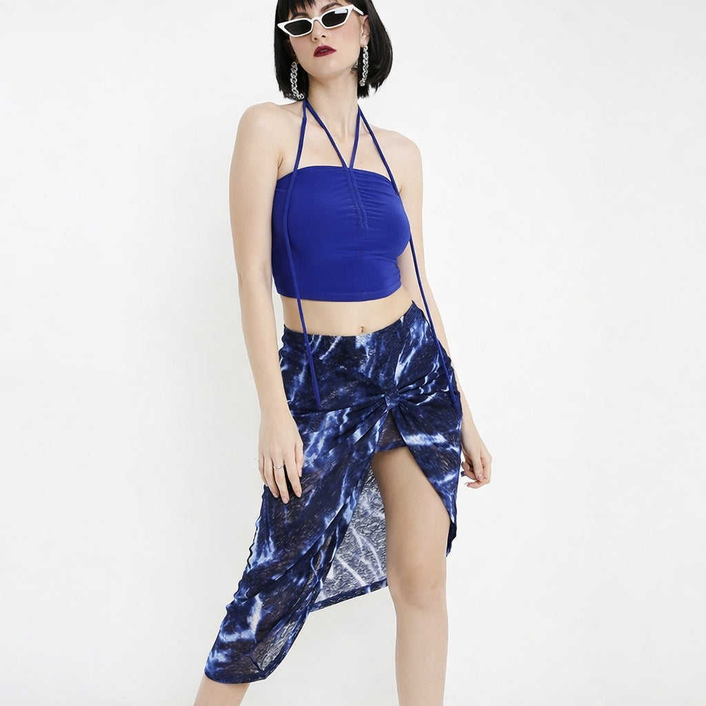 Royal Blue Beach Crop Top + Drawstring Asymmetrical Skirt