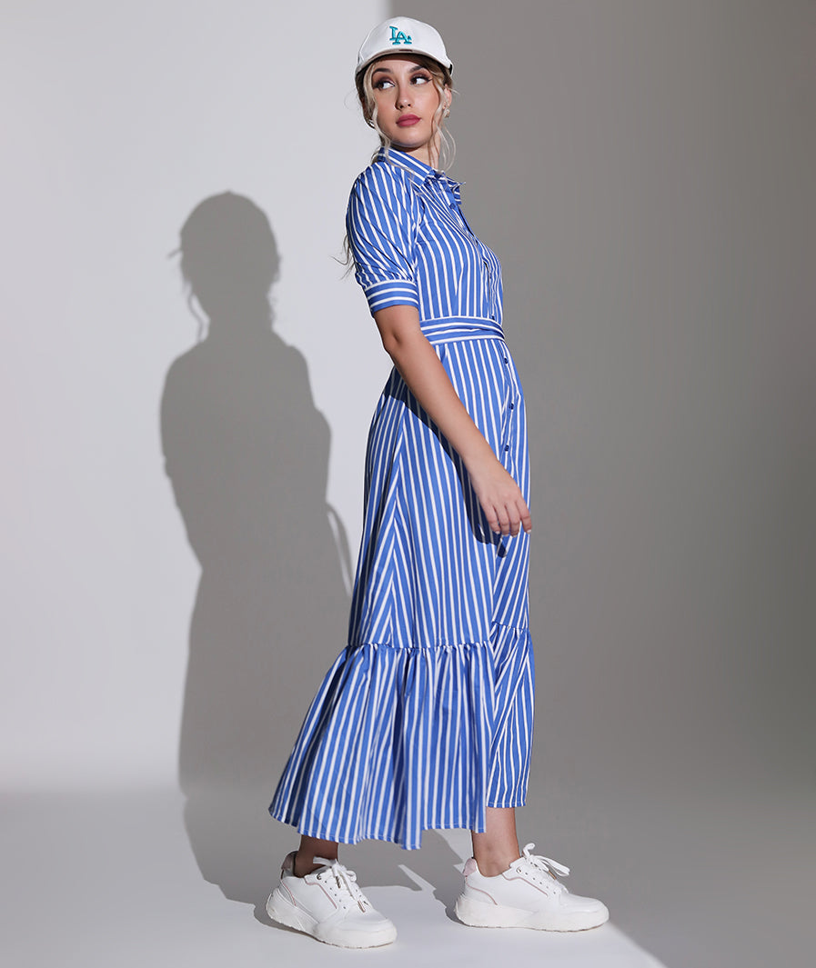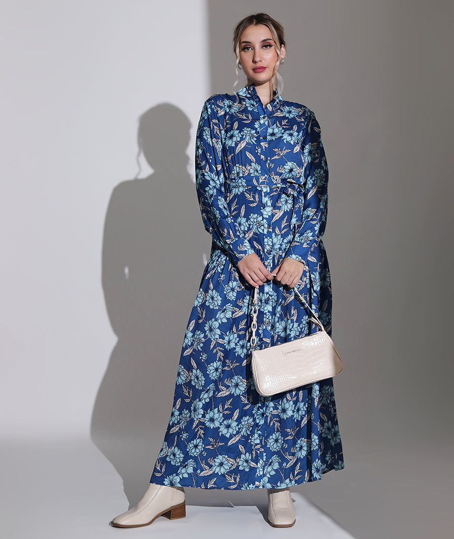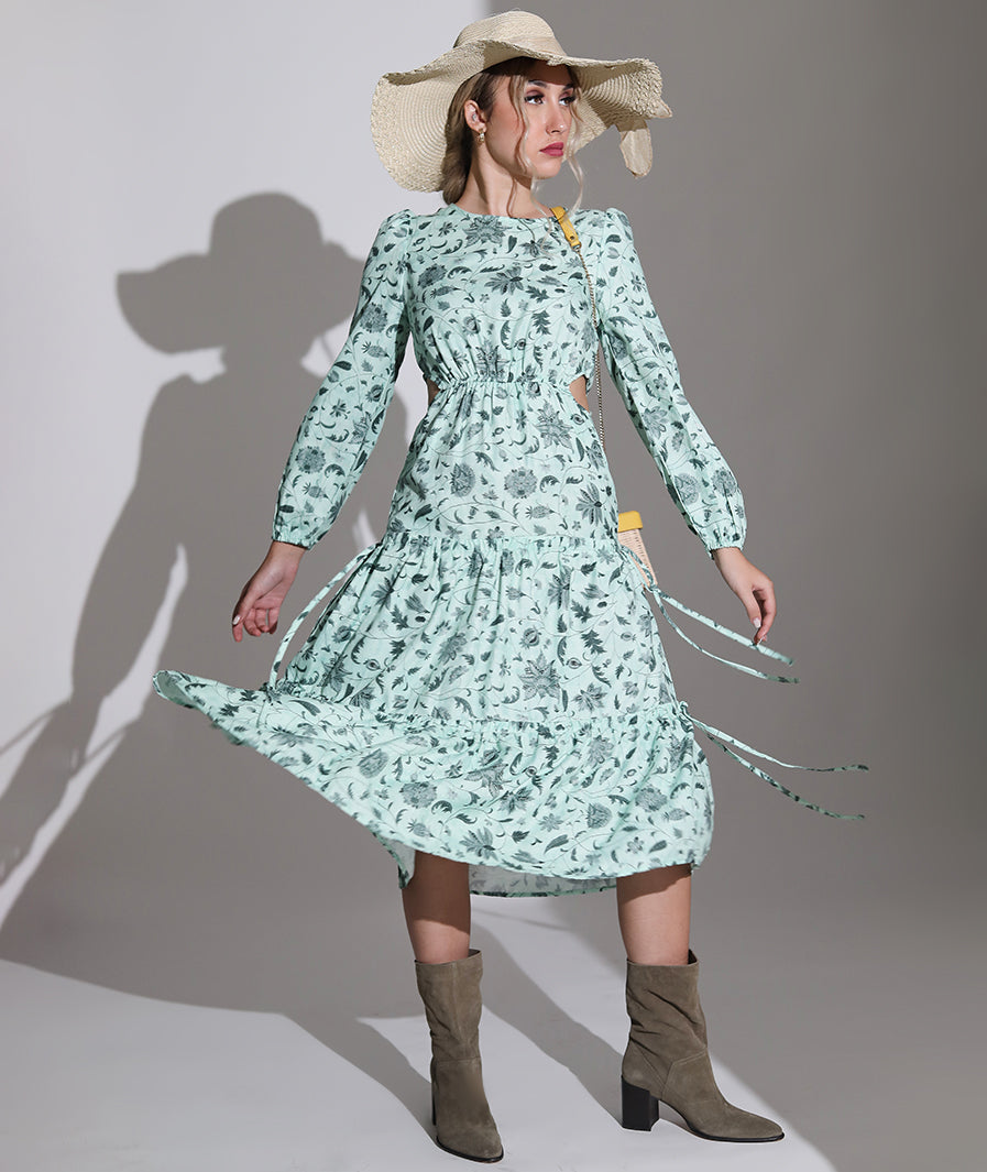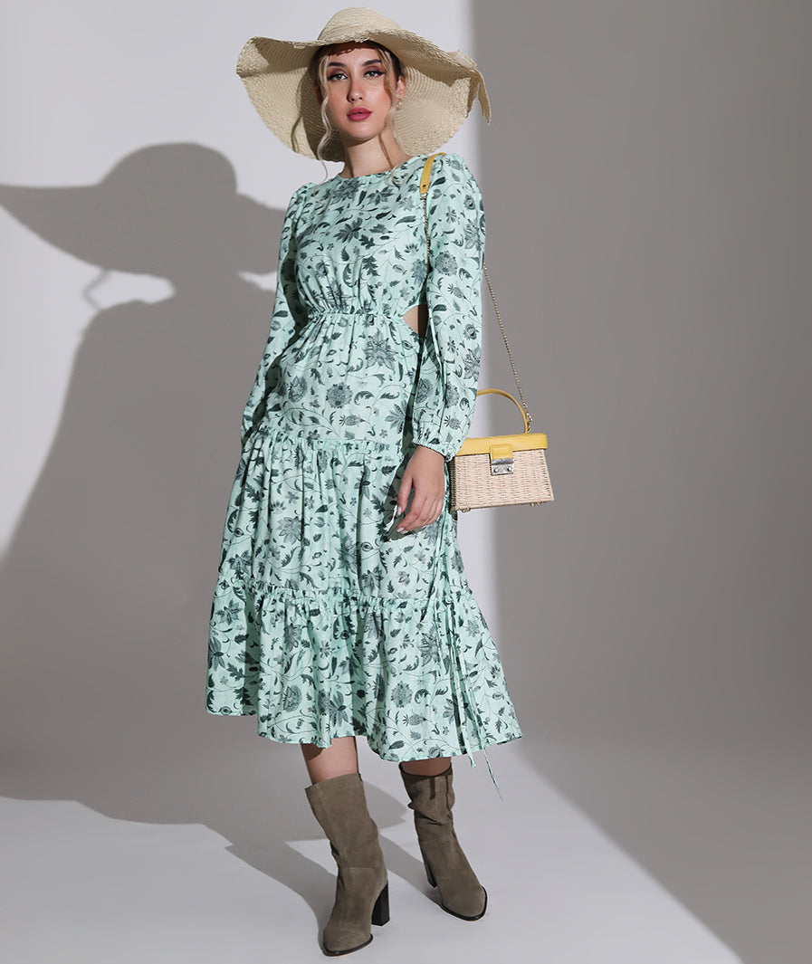 Shimmer Blue Dress with a Round Cut-Out Detail