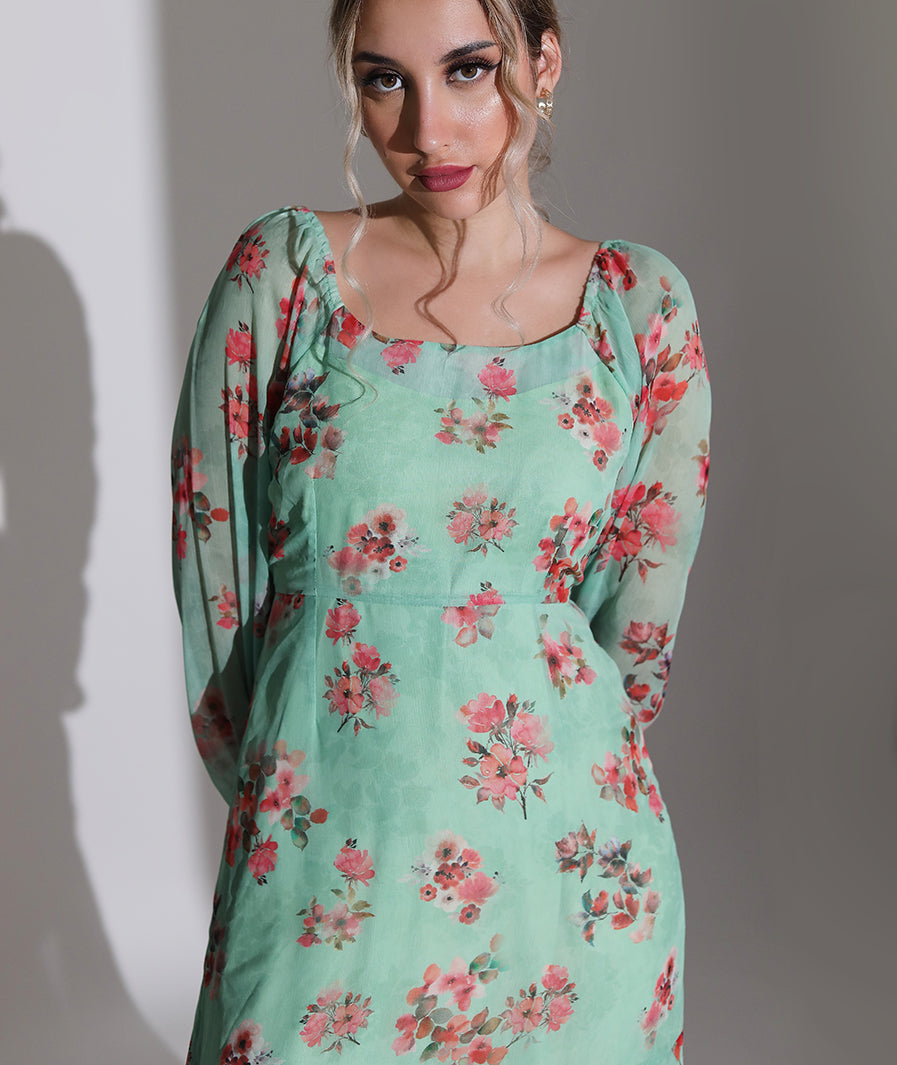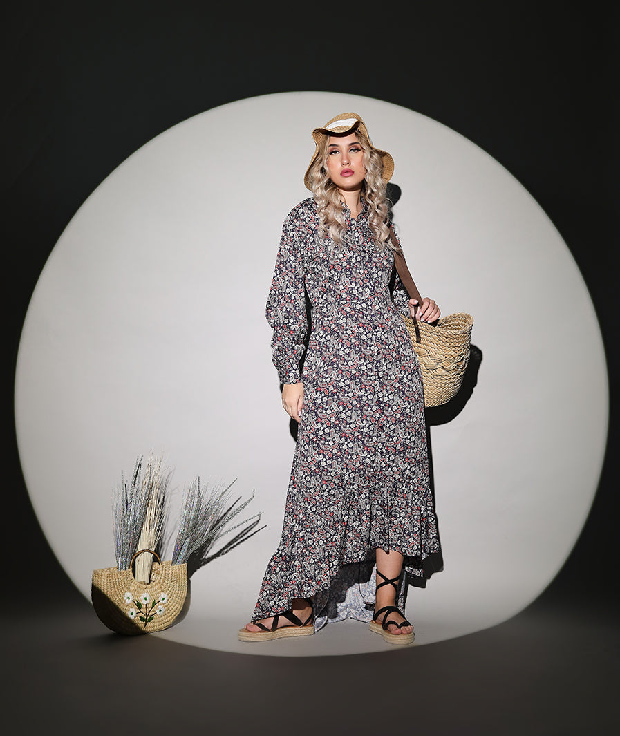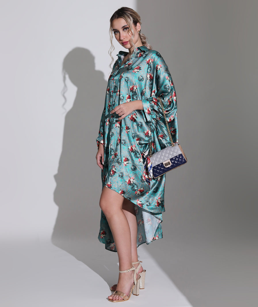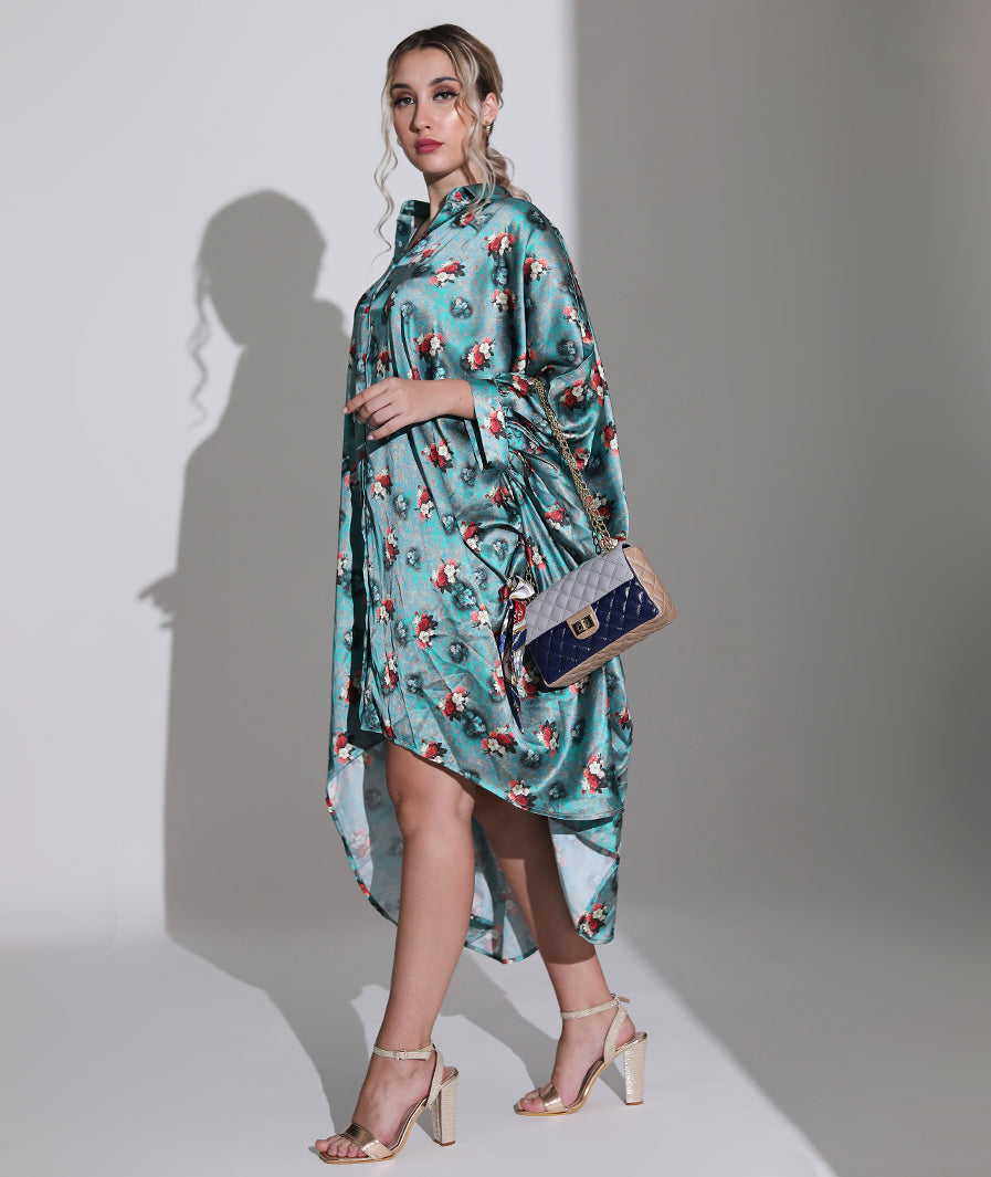 Shimmer Blue Dress with a Round Cut-Out Detail