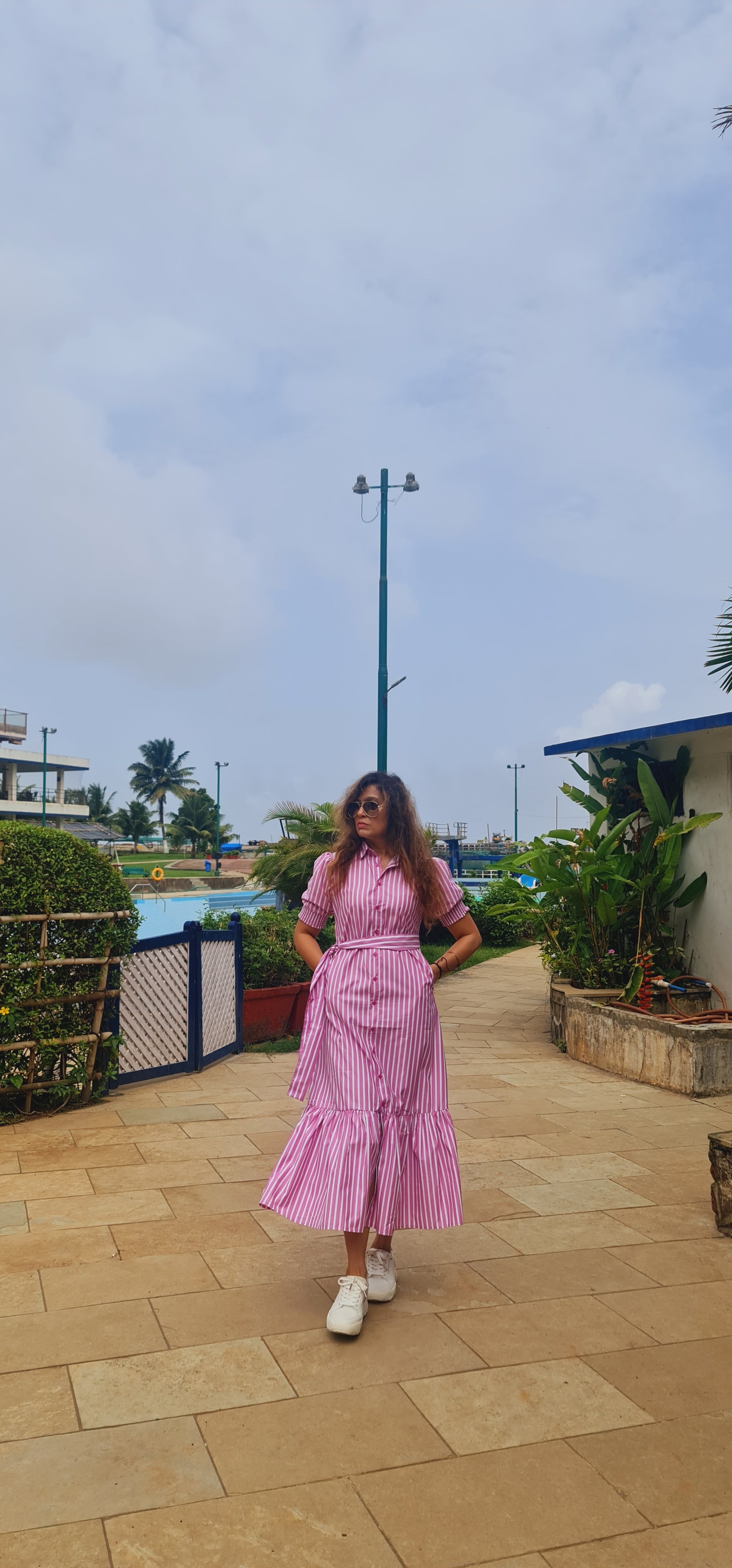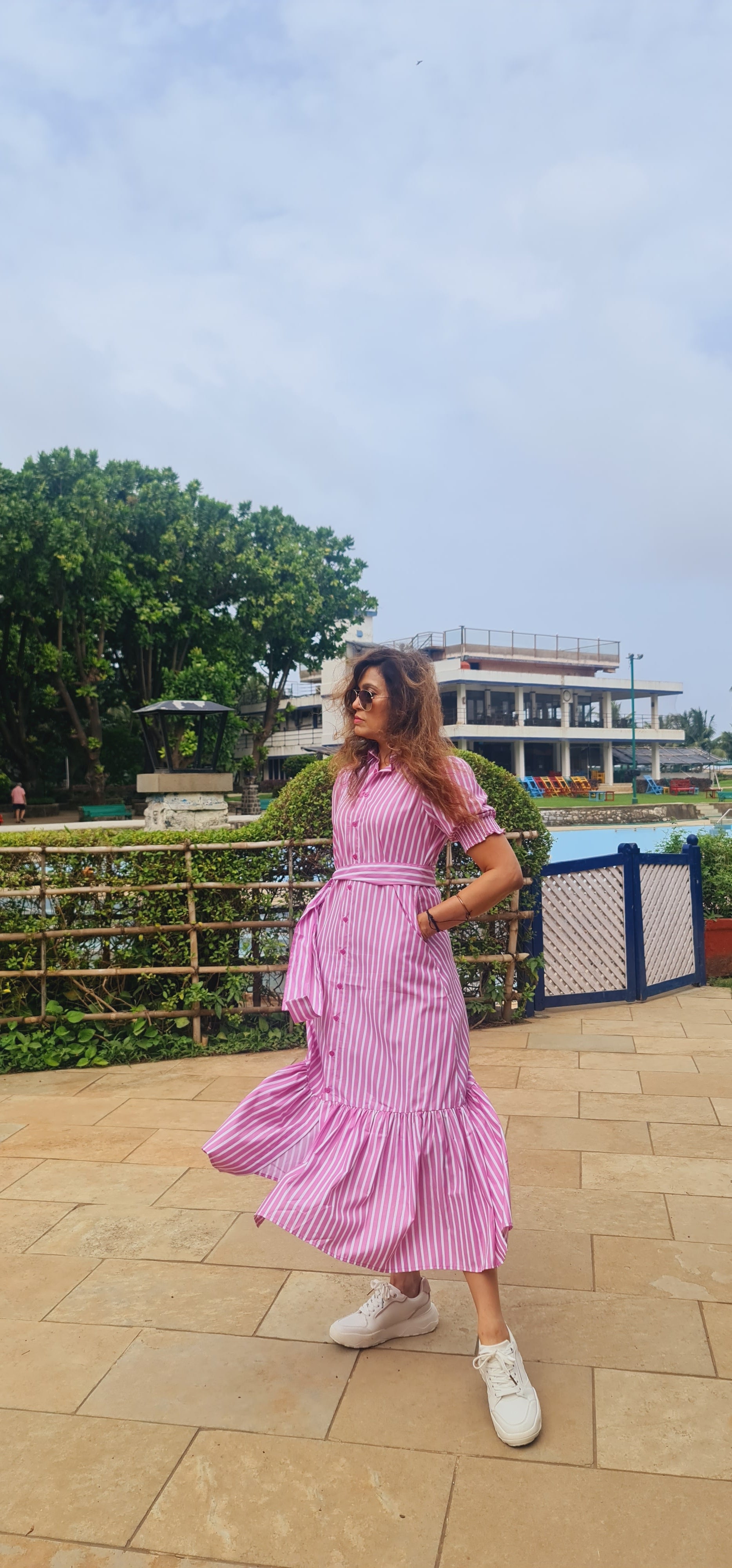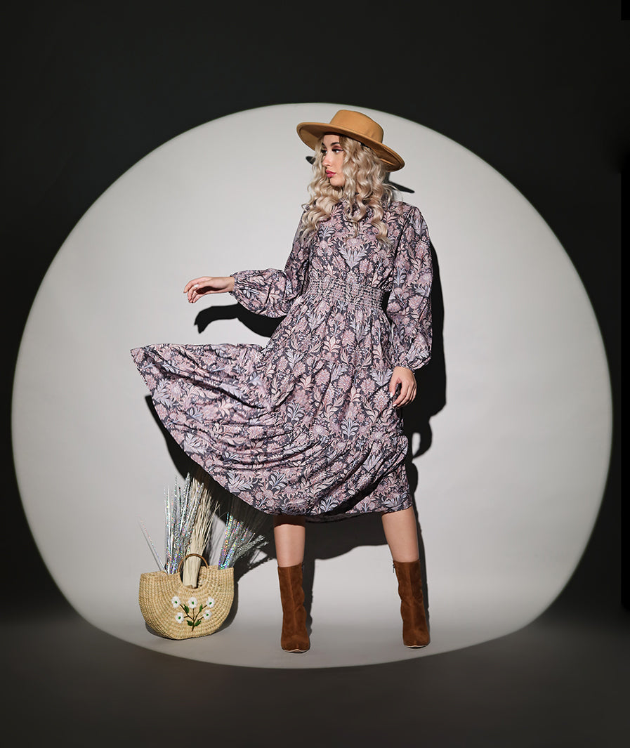 White Puff Sleeves Polka Dots Dress with Satin Sash