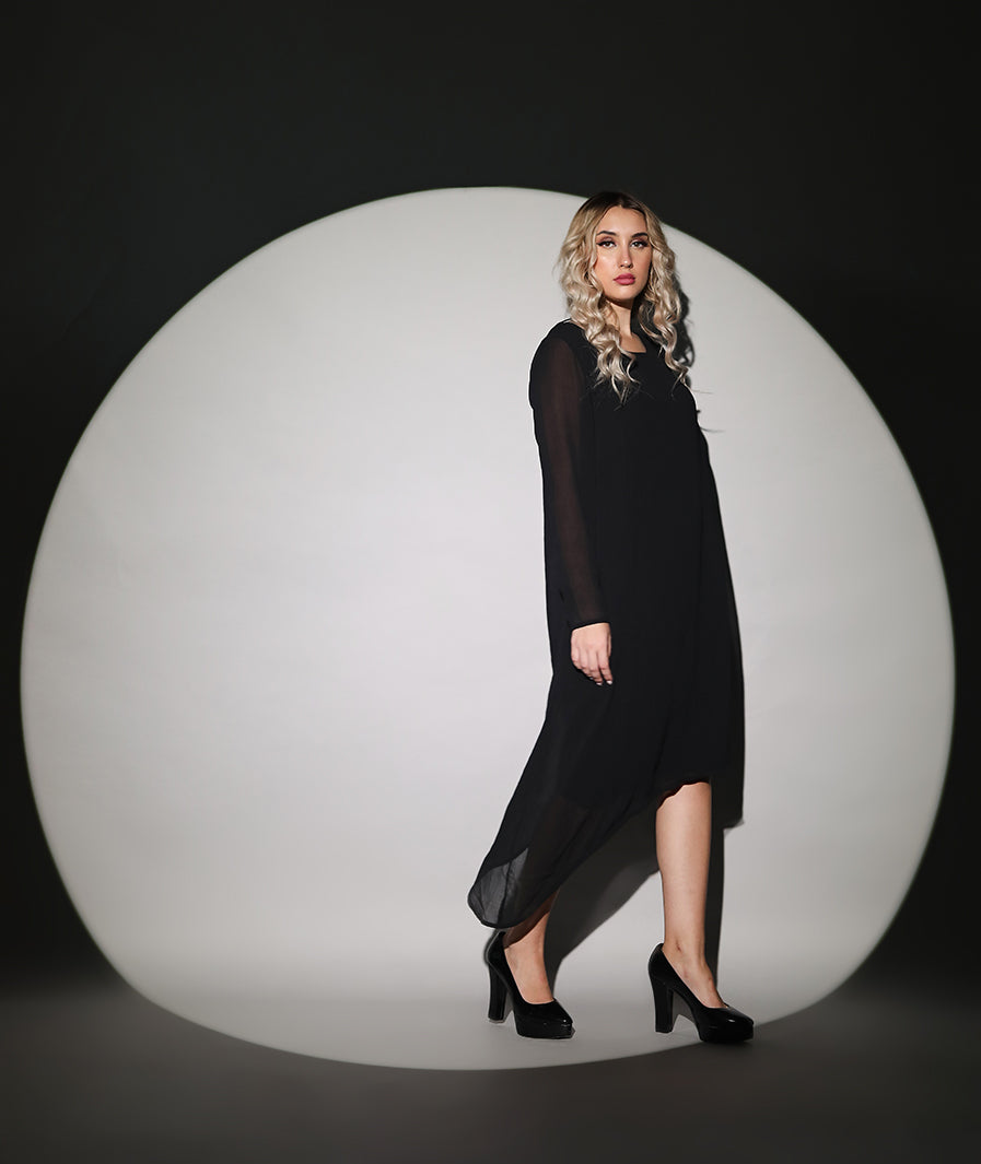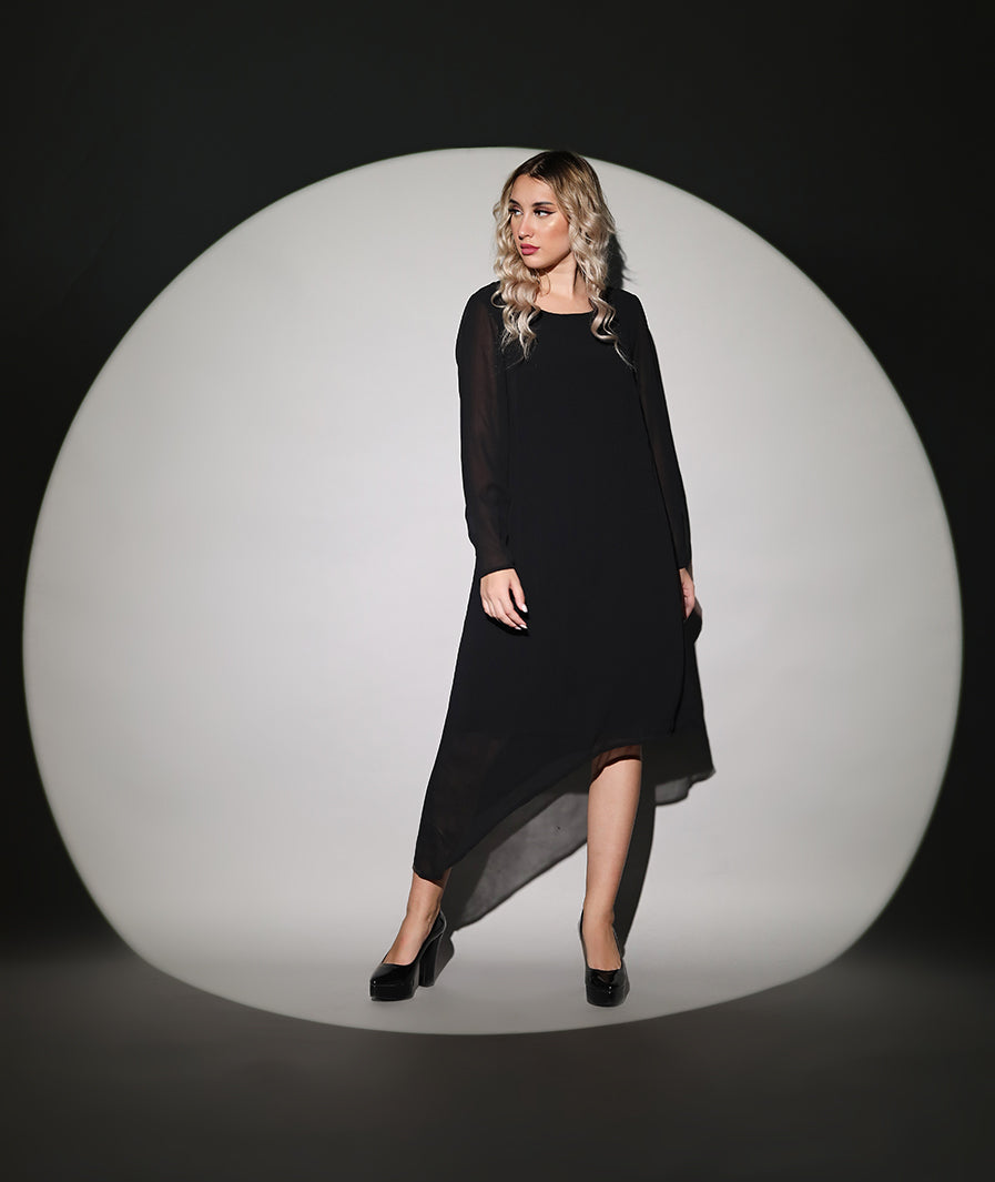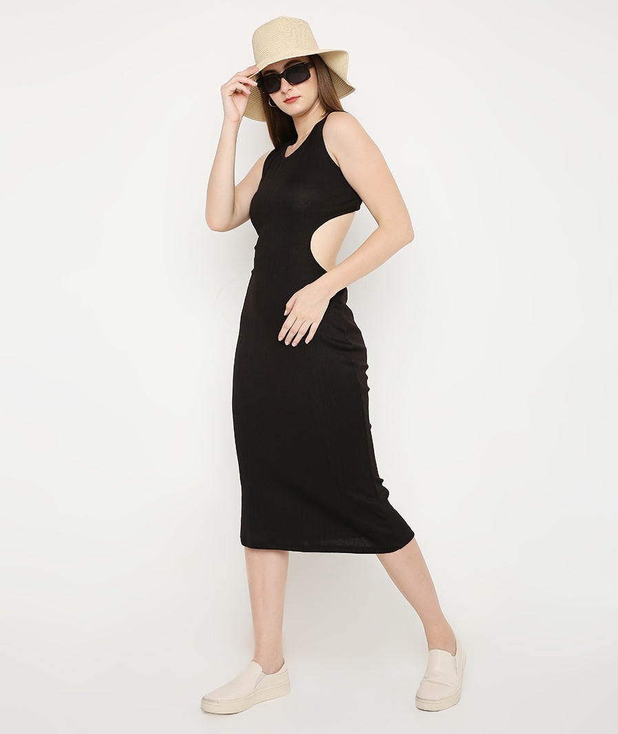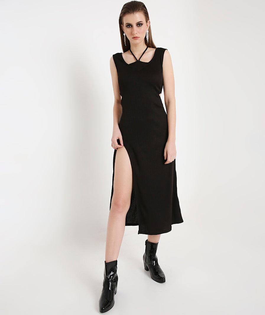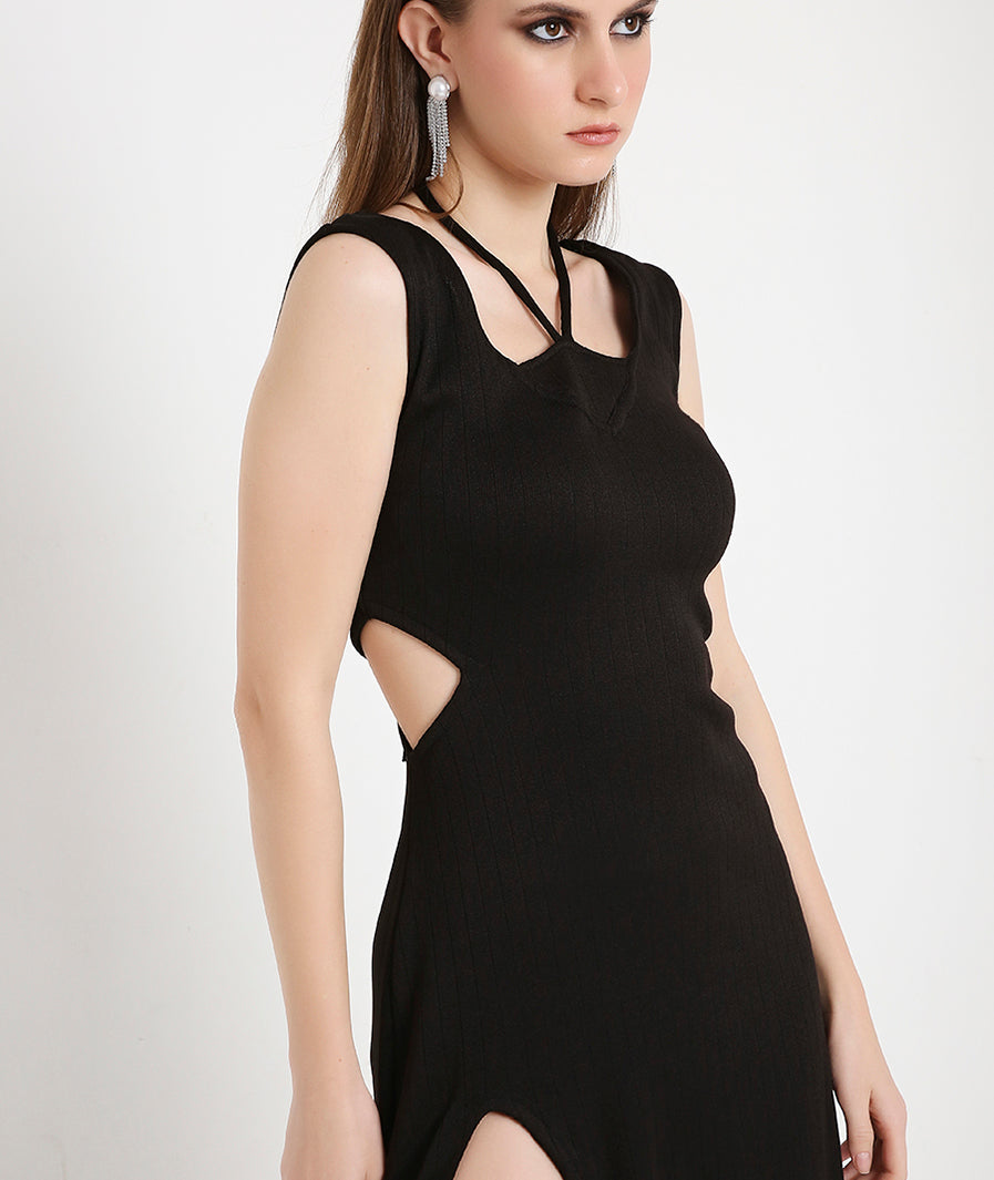 Black Cocktail Long Slit Knit Dress with Side Key Holes