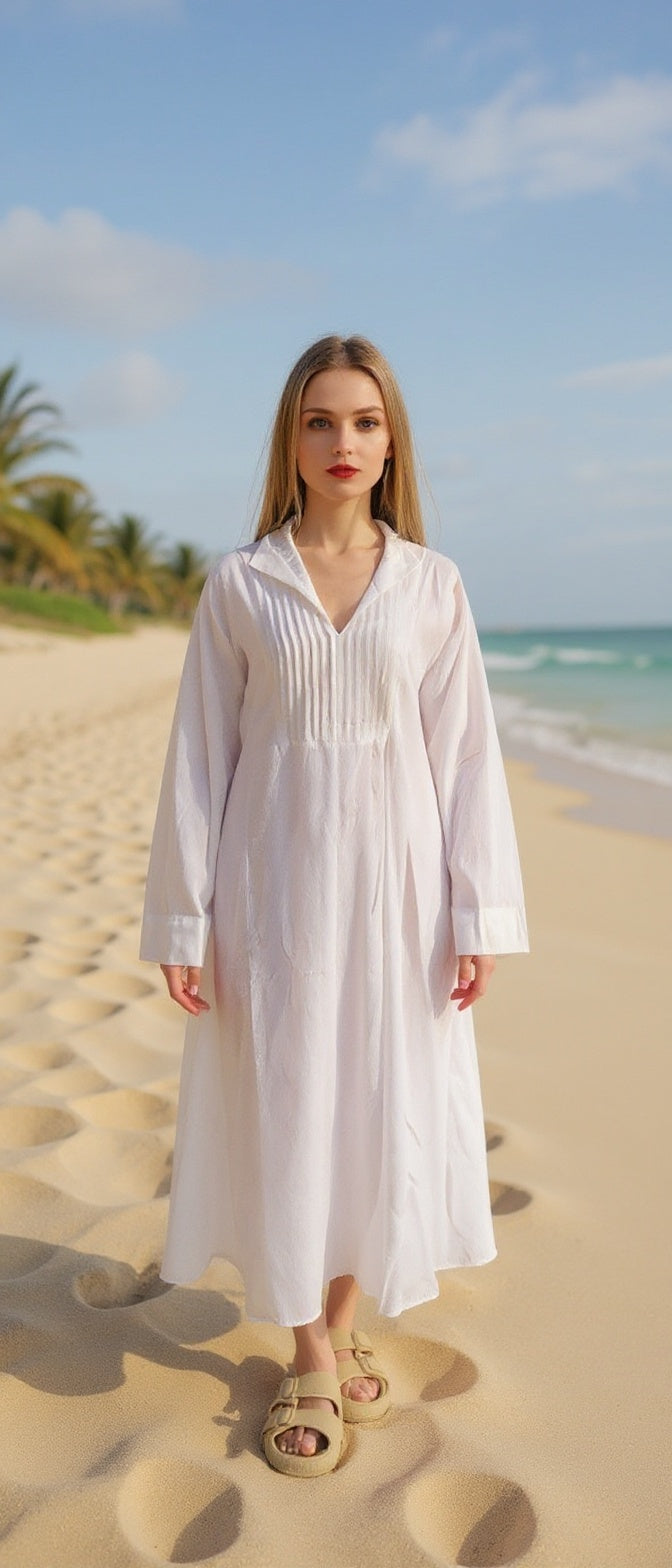 Pin Tucks Collar Island Wear Kaftan Dress