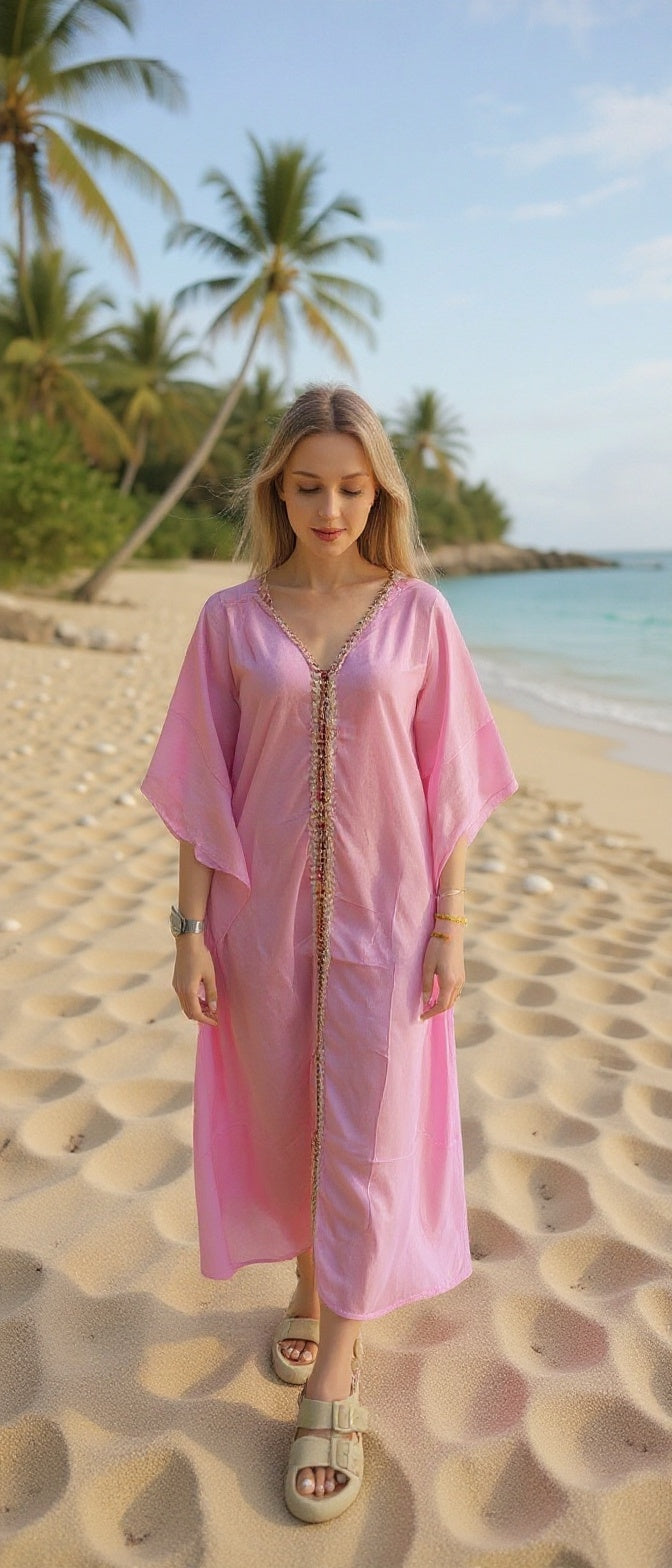 Pink Paros Beaded Kaftan