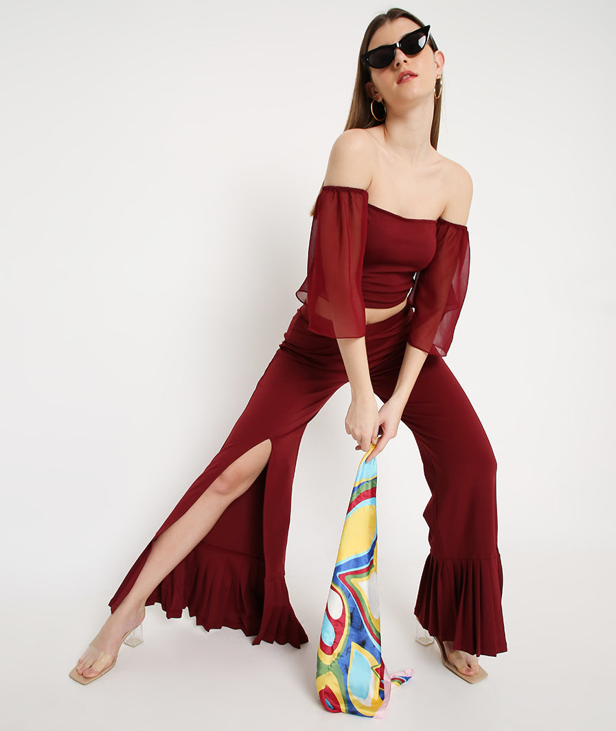 Wine Slit Pants with Pleated Bottoms