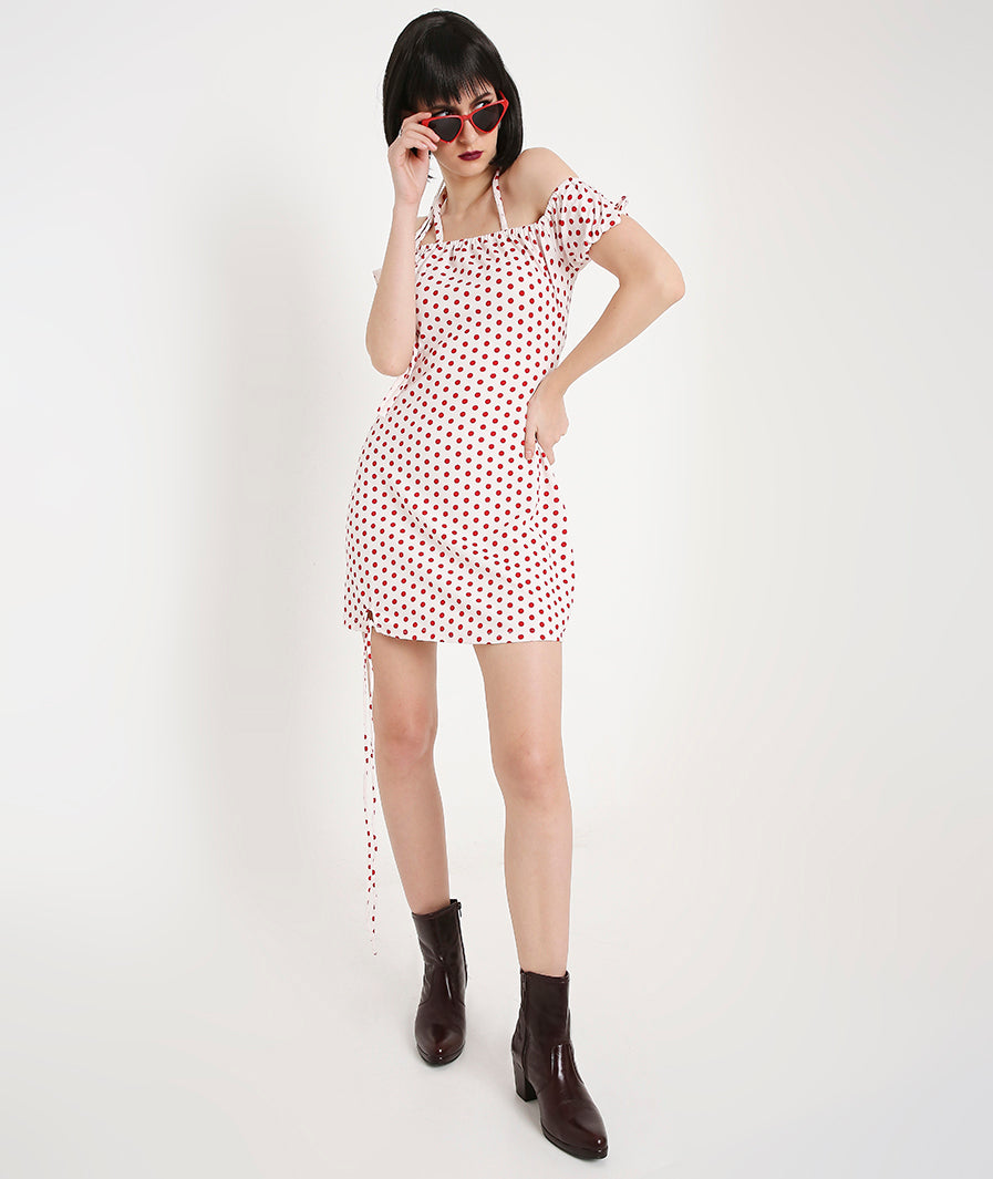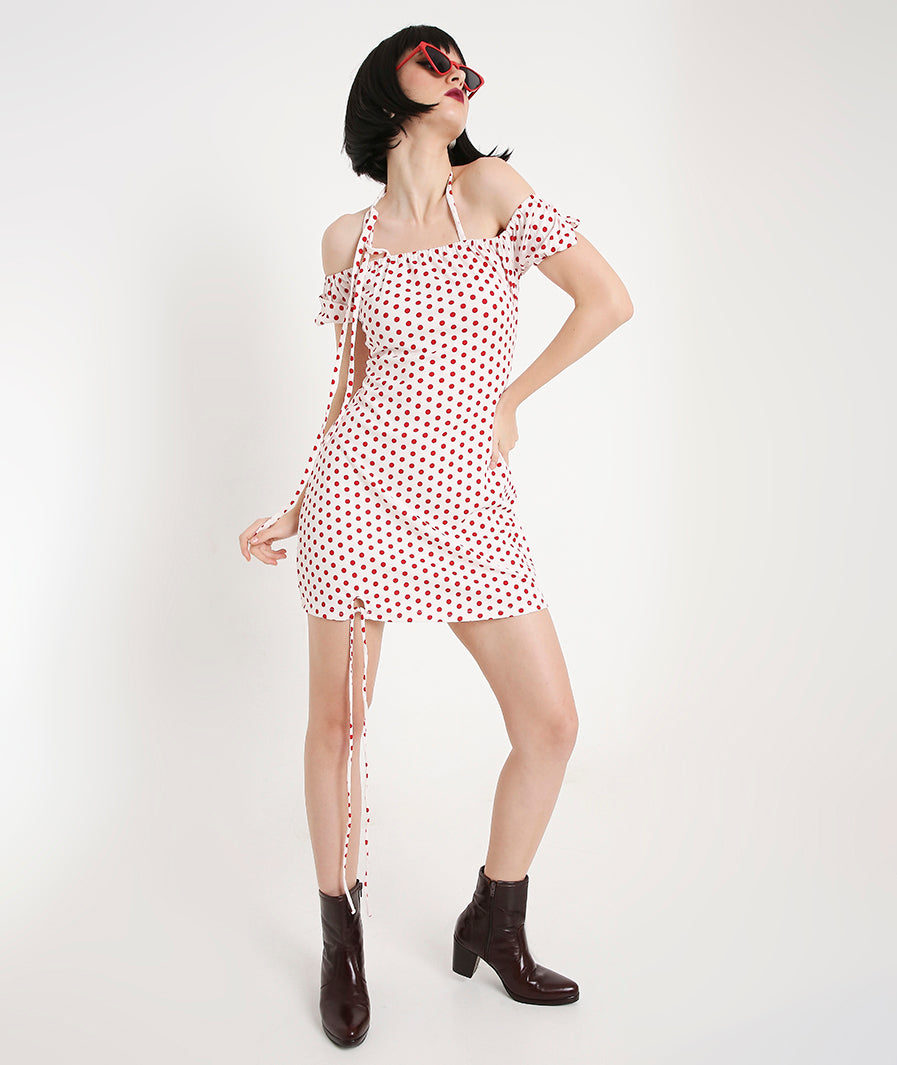 Polka Dots Mini Dress with Back TieUp and Side Knot Detail