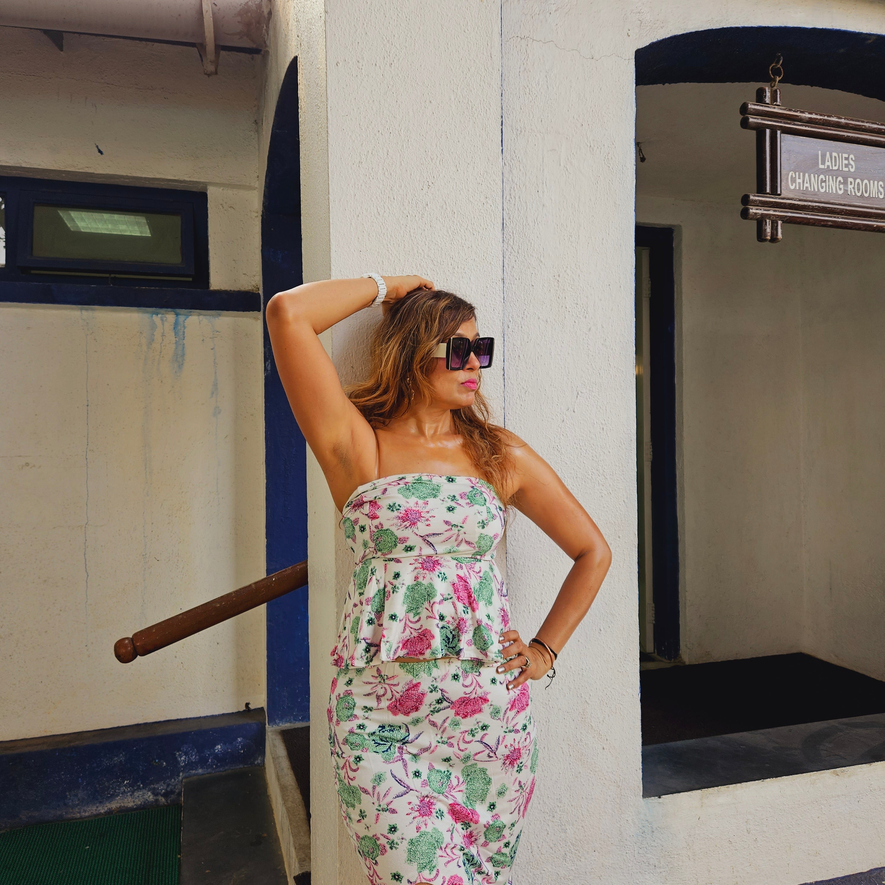 Blue Floral Beach Crop Top with Long Back TieUps