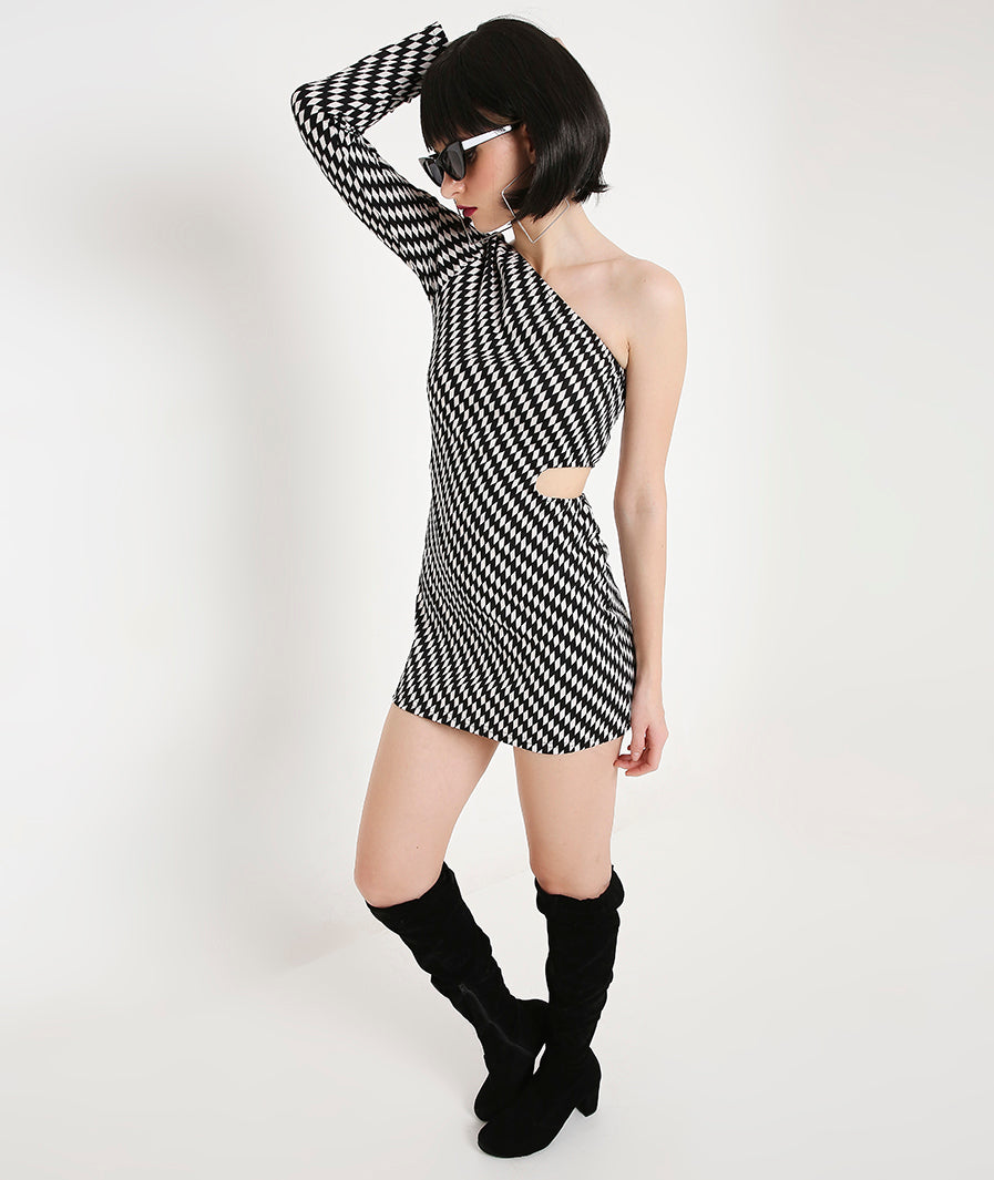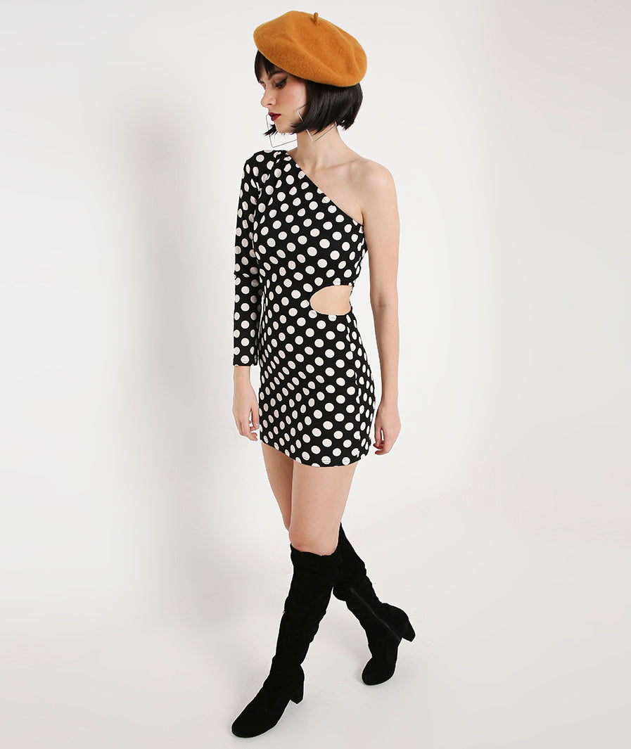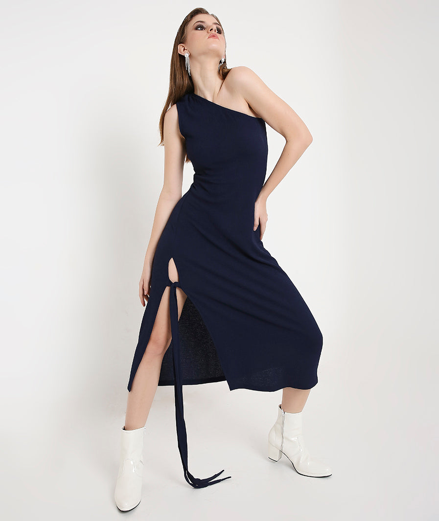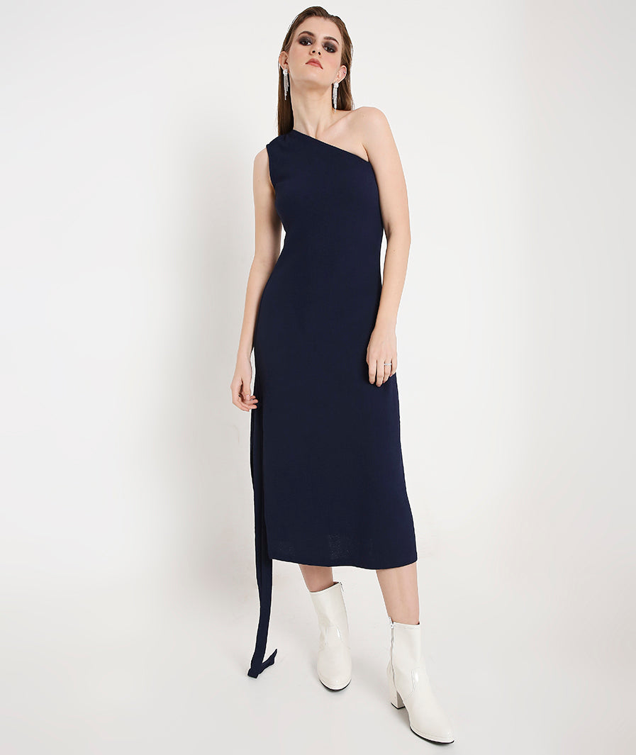 Off-Shoulder Cocktail Dress with a Side Sash-Navy Blue