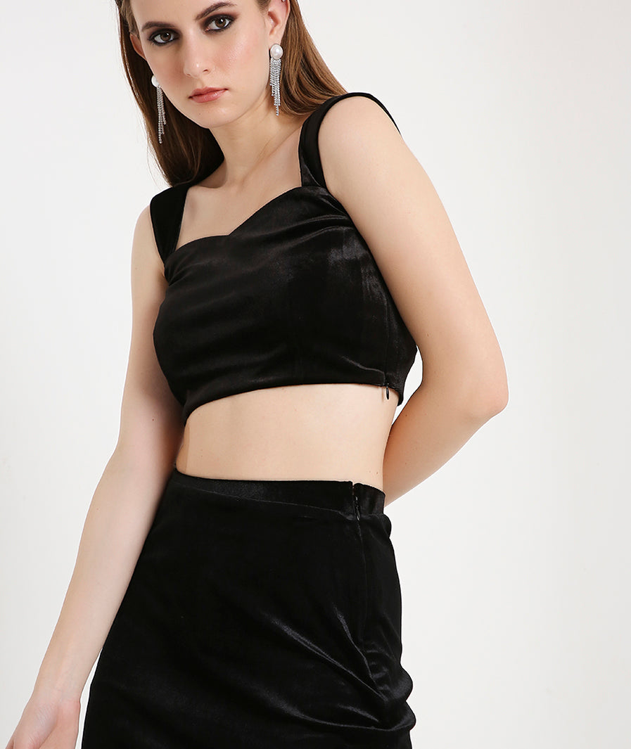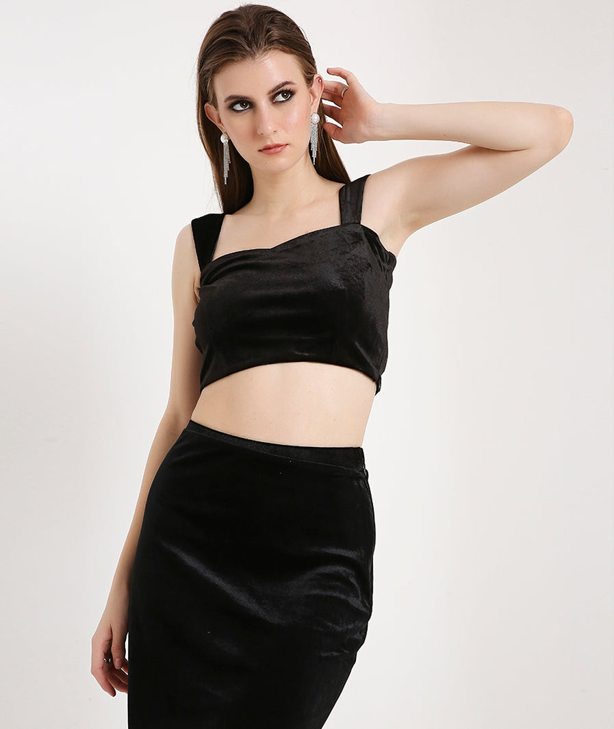 Velvet Crop Top with Broad Straps-Black